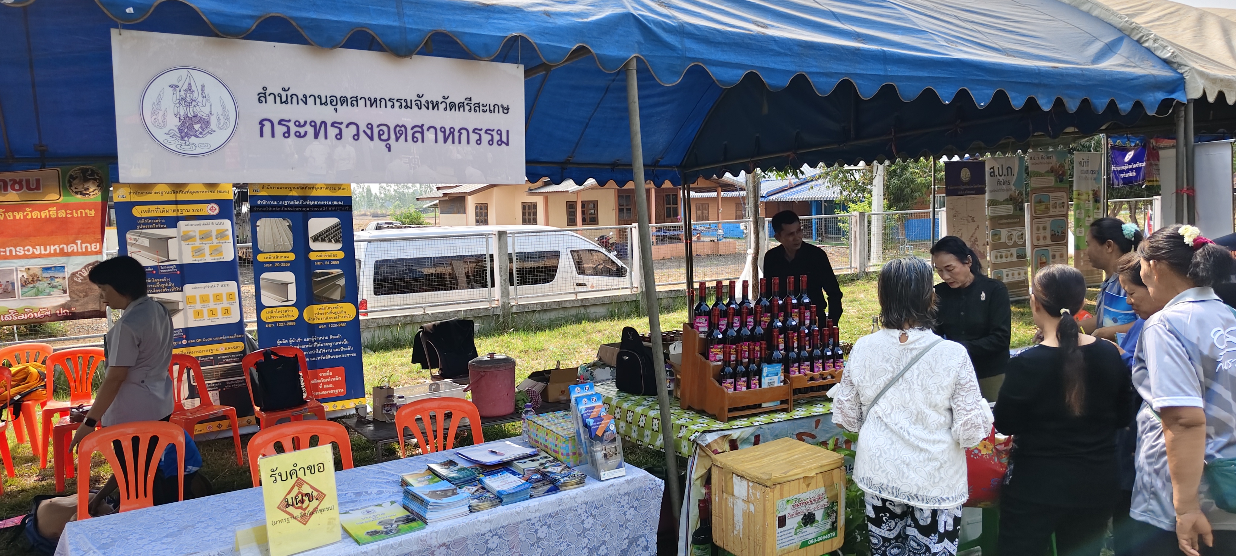 วันพฤหัสบดีที่ 19 มีนาคม 2569 เวลา 09.00 น. นายชาติศักดิ์ จันทร์สุคนธ์ อุตสาหกรรมจังหวัดศรีสะเกษ พร้อมด้วยเจ้าหน้าที่กลุ่มส่งเสริมและพัฒนาอุตสาหกรรม ร่วมโครงการจังหวัดเคลื่อนที่ “หน่วยบำบัดทุกข์ บำรุงสุข สร้างรอยยิ้มให้ประชาชน”จังหวัดศรีสะเกษ ประจำปีงบประมาณ พ.ศ. 2569 ณ โรงเรียนบ้านโนนสูง ตำบลกระแชง อำเภอกันทรลักษ์ จังหวัดศรีสะเกษ โดยมี นายอนุรัตน์ ธรรมประจำจิต ผู้ว่าราชการจังหวัดศรีสะเกษ เป็นประธานในพิธีเปิด ในการจัดกิจกรรมดังกล่าว สำนักงานอุตสาหกรรมจังหวัดศรีสะเกษ ได้นำผู้ประกอบการชุมชน นางกำไลทิพย์ สิมพร (ผู้ประกอบการรายเดียว) ผลิตภัณฑ์ น้ำมัลเบอร์รี่ ในพื้นที่อำเภอกันทรลักษ์ ร่วมออกร้านแสดงและจำหน่ายสินค้า เพื่อเพิ่มช่องทางการตลาด สร้างรายได้ และประชาสัมพันธ์ผลิตภัณฑ์ให้เป็นที่รู้จัก พร้อมทั้งพัฒนาศักยภาพ ผู้ประกอบการและส่งเสริมเศรษฐกิจชุมชนในพื้นที่