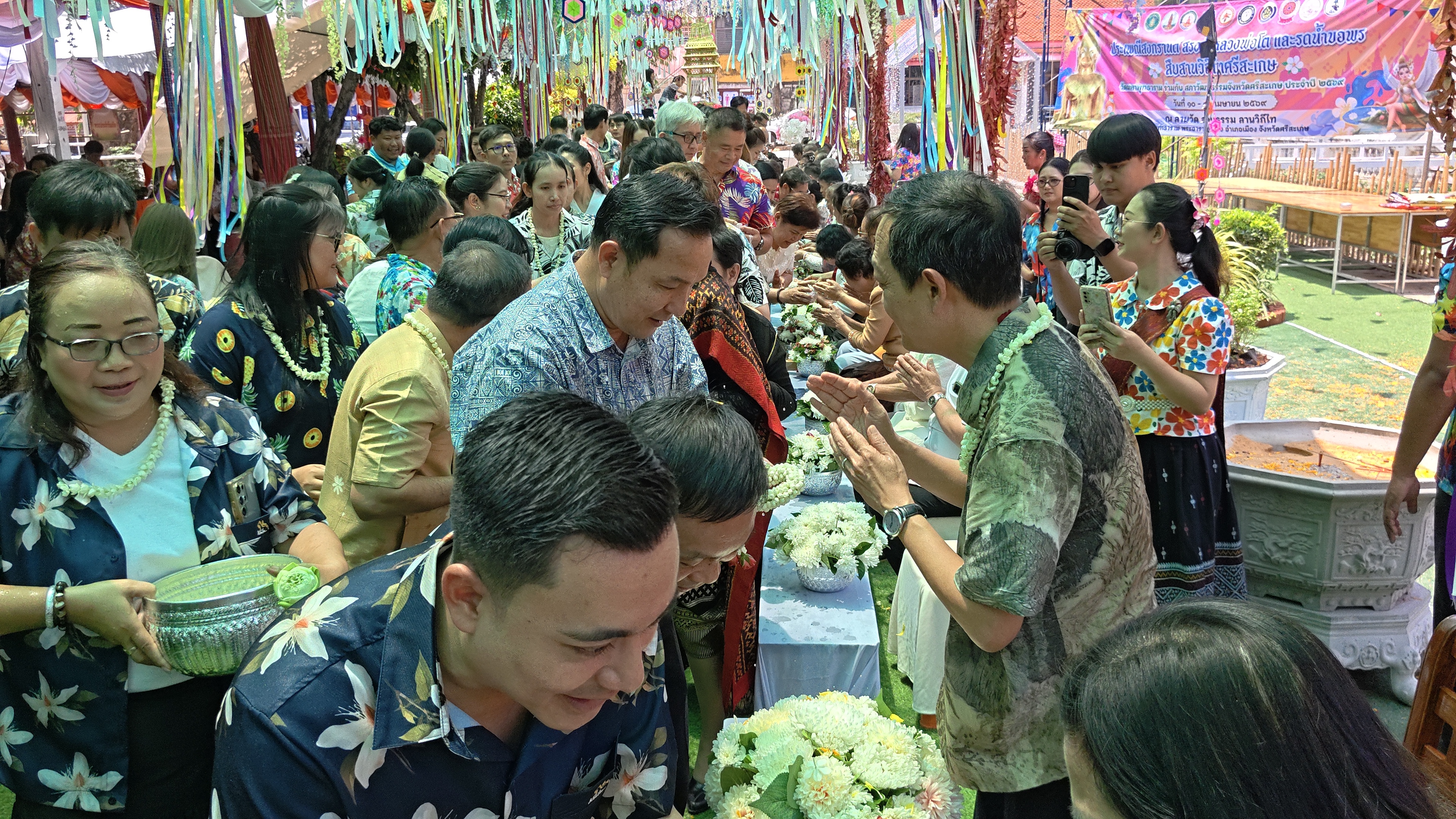 วันศุกร์ที่ 10 เมษายน 2569 เวลา 09.09 น. นายชาติศักดิ์ จันทร์สุคนธ์ อุตสาหกรรมจังหวัดศรีสะเกษ พร้อมด้วยเจ้าหน้าที่สำนักงานอุตสาหกรรมจังหวัดศรีสะเกษ ร่วมงานนมัสการสรงน้ำหลวงพ่อโต “บูชาหลวงพ่อใหญ่ ไหว้ตรุษสงกรานต์ สนามธรรมราช” และพิธีรดน้ำขอพรผู้ว่าราชการจังหวัดศรีสะเกษ เนื่องในงานประเพณีสงกรานต์สืบสานวิถีไทยศรีสะเกษ ประจำปี 2569 ณ วัดมหาพุทธาราม พระอารามหลวง อำเภอเมืองศรีสะเกษ จังหวัดศรีสะเกษ โดยมี นายอนุรัตน์ ธรรมประจำจิต ผู้ว่าราชการจังหวัดศรีสะเกษ เป็นประธานในพิธีเปิดงาน โอกาสนี้ได้รับความเมตตาจาก พระวชิรสิทธิธาดา เจ้าคณะจังหวัดศรีสะเกษ เป็นประธานฝ่ายสงฆ์ นำประกอบพิธีทางศาสนา เพื่อความเป็นสิริมงคลแก่ผู้เข้าร่วมงาน