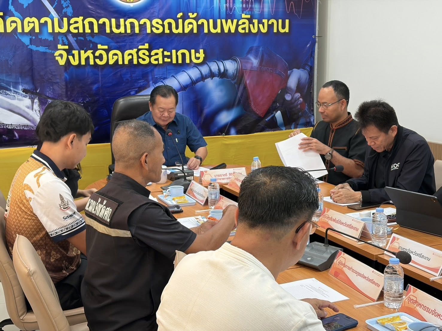 วันอังคารที่ 21 เมษายน 2569 เวลา 09.30 น. นายชาติศักดิ์ จันทร์สุคนธ์ อุตสาหกรรมจังหวัดศรีสะเกษ ร่วมประชุมคณะทำงานติดตามสถานการณ์ด้านพลังงานจังหวัดศรีสะเกษ ครั้งที่ 5/2569 เพื่อติดตามสถานการณ์พลังงานในพื้นที่อย่างใกล้ชิด ครอบคลุมทั้งด้านการผลิต การจำหน่าย และการใช้พลังงาน รวมถึงสถานการณ์ราคาน้ำมันเชื้อเพลิง และแนวโน้มที่อาจส่งผล กระทบต่อประชาชน พร้อมหารือแนวทางบริหารจัดการพลังงาน และกำหนดมาตรการรองรับผลกระทบในทุกมิติ เพื่อให้การดำเนินงานเป็นไปอย่างมีประสิทธิภาพ ทันต่อสถานการณ์ และสามารถดูแลประชาชนได้อย่างทั่วถึง ณ ห้องประชุมศรีลำดวน ศูนย์ดำรงธรรมจังหวัดศรีสะเกษ ชั้น 1 ศาลากลางจังหวัดศรีสะเกษ อำเภอเมืองศรีสะเกษ จังหวัดศรีสะเกษ โดยมี นายธาตรี สิริรุ่งวนิช รองผู้ว่าราชการจังหวัดศรีสะเกษ